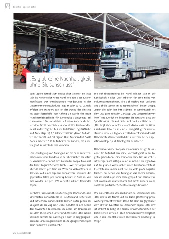 einem reinen Gleisanschluss ließ man es aber nicht be- Speditionsmittelstand nicht mehr auf die Bahn setze.