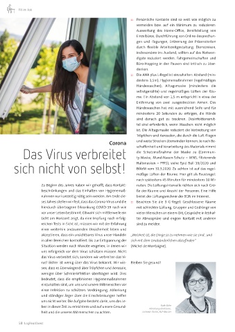 beschränkungen und das Einhalten von Hygienemaß- ße der Räume und Anzahl der Personen. Eine Hilfe