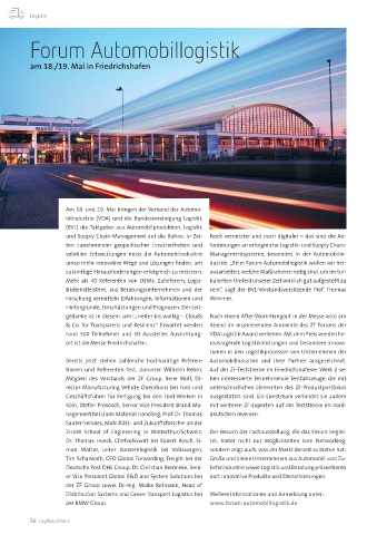 umso mehr innovative Wege und Lösungen finden, um dustrie. „Beim Forum Automobillogistik wollen wir her-