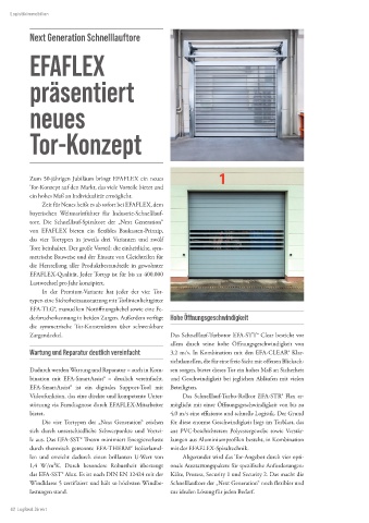 stützung via Ferndiagnose durch EFAFLEX-Mitarbeiter möglicht mit einer Öffnungsgeschwindigkeit von bis zu