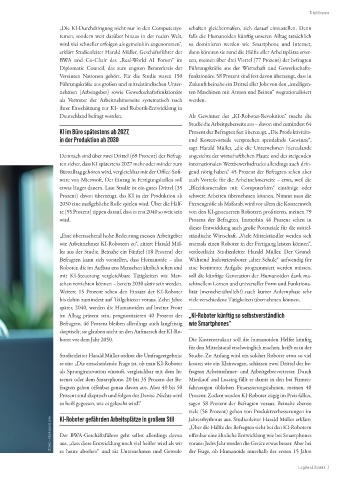 wie Arbeitnehmer KIRobotern zu“, zitiert Harald Mül erstmals einen Roboter in der Fertigung leisten können“,